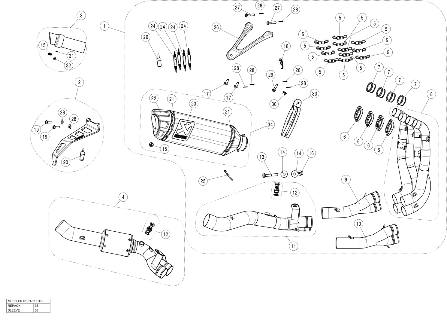 S-K10R10-RC - Full Exhaust Akrapovic Racing Carbon Kawasaki ZX-10R/RR (21-22)