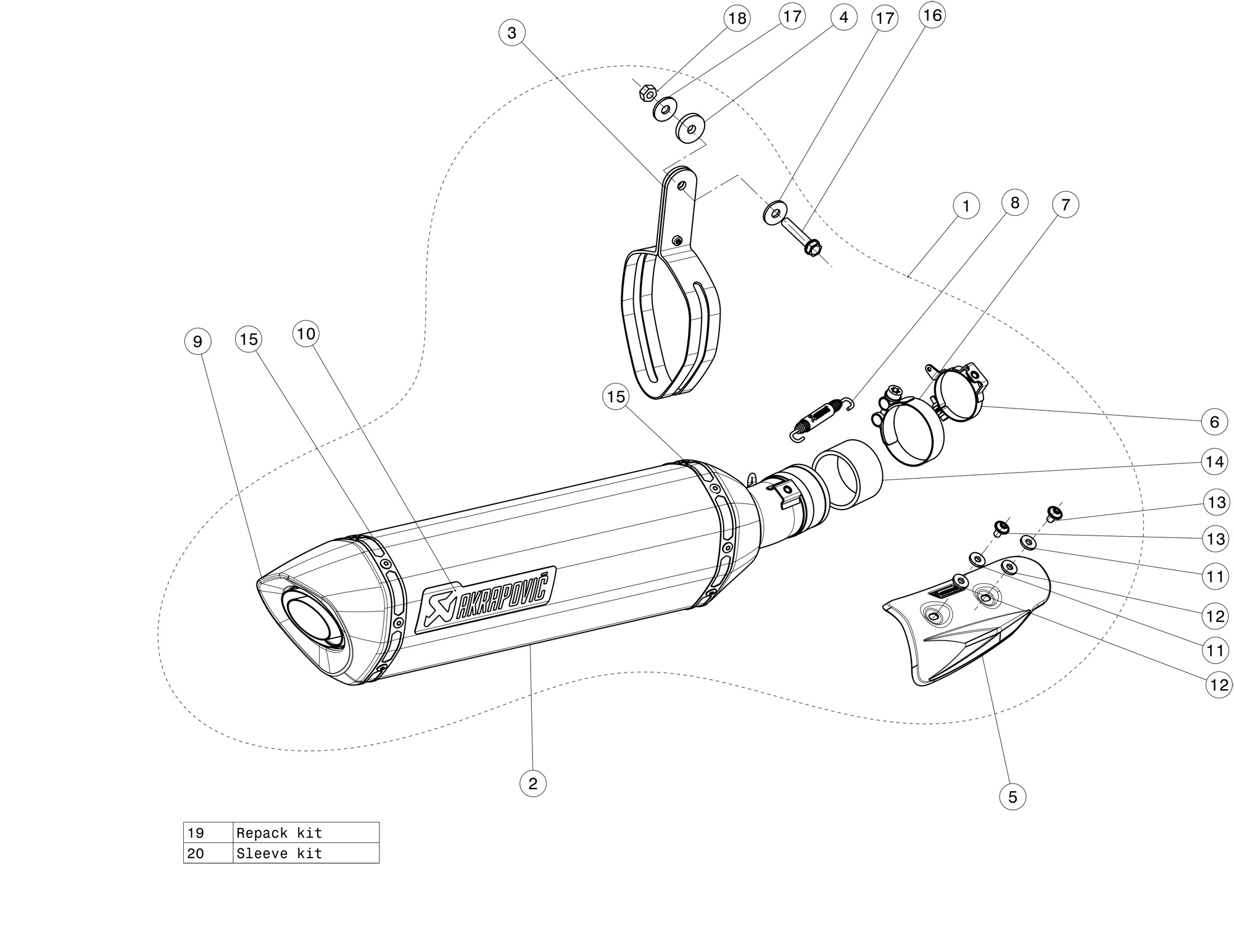 This is a hexagonal muffler design constructed from lightweight titanium with a carbon-fibre outer sleeve, endcap, and heatshield. The distinctive Akrapovič sound has a deeper tone. The entry level in exhaust tuning offers improved torque and power throughout the whole rev range. The muffler is smaller than stock to offer a more striking and sporty appearance, and it weighs approximately 40% less than the standard exhaust. It is EC- and ECE-compliant, there is no need for remapping, and it has a simple plug-and-play installation.