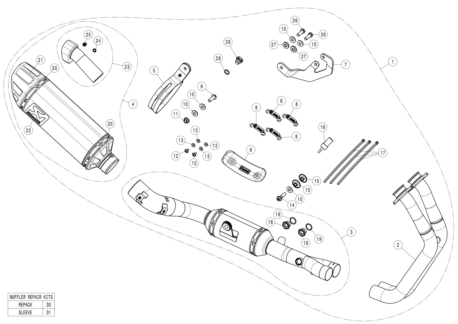 This exhaust system is compatible with the original Suzuki soft side cases set.