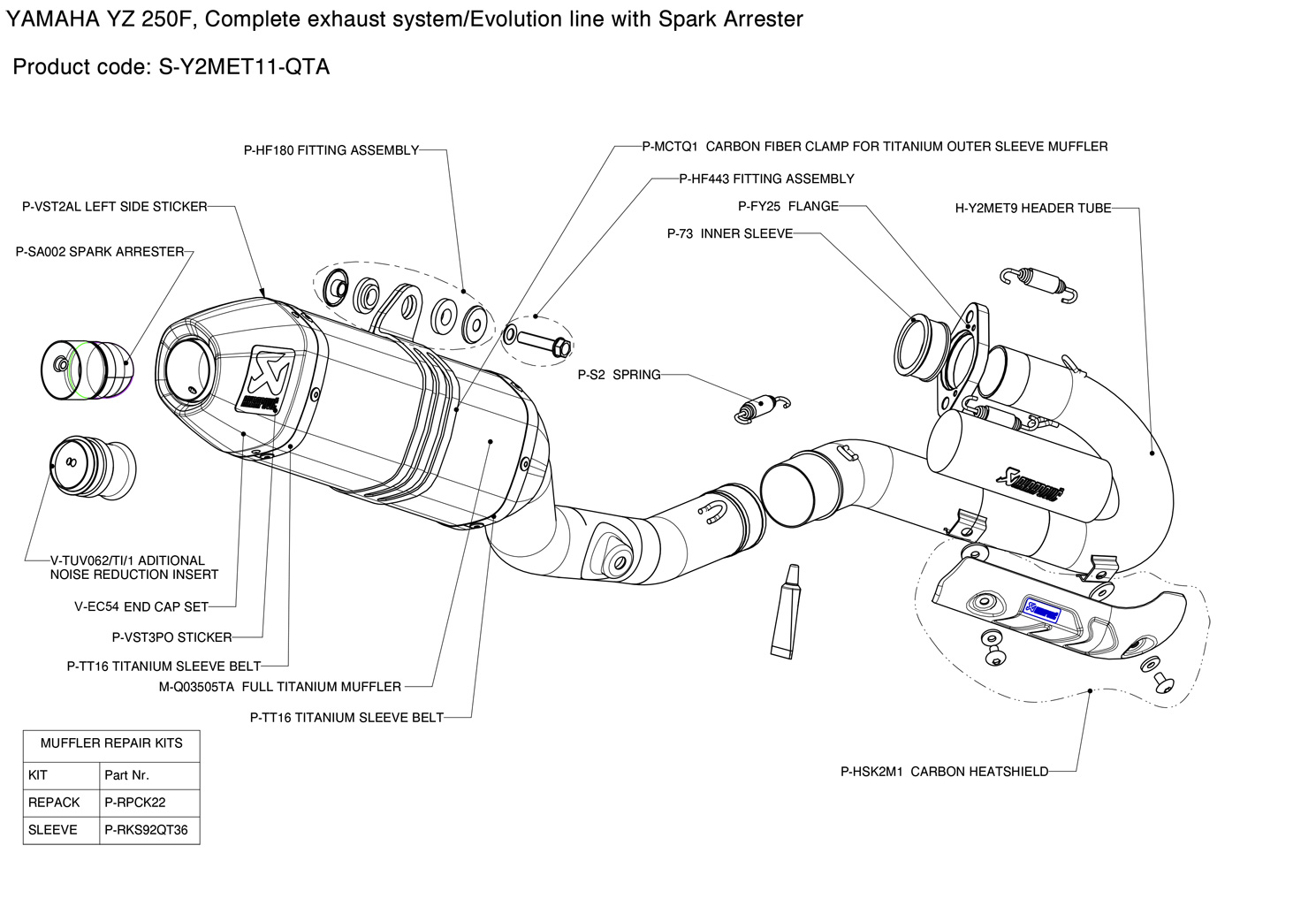 S-Y2MET11-QTA - Exhaust Akrapovic Evolution Titanium Yamaha YZ 250 F / FX