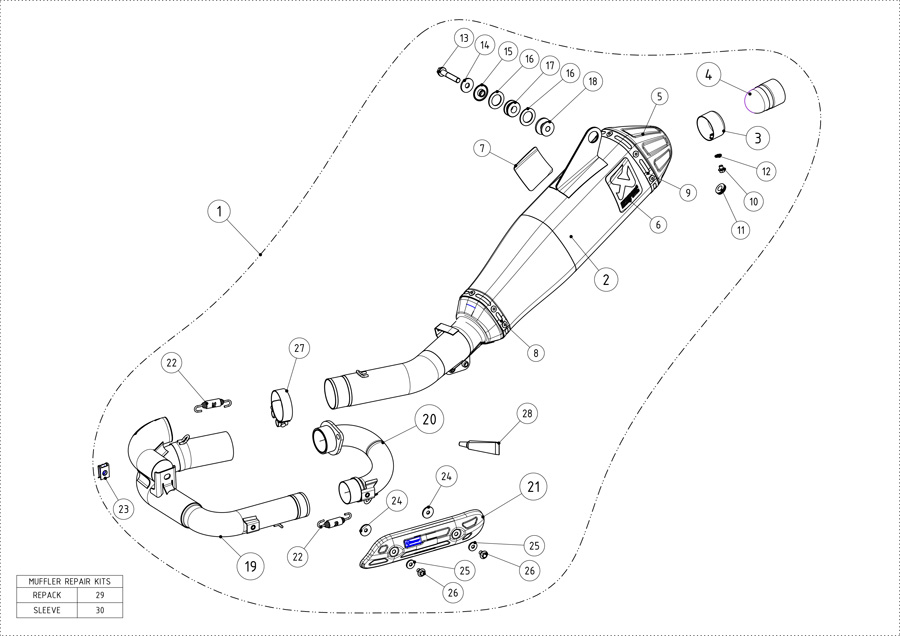 The flagship of the Akrapovič exhaust system range, used and tested by our top factory teams in motorcycle racing. It’s simply the finest exhaust system available. Each model is unique and dedicated to maximizing the engine’s performance, while reducing overall weight for optimized overall handling of the motorcycle. It is made entirely of titanium. Exhaust systems meet FIM noise limits, feature a more durable welded bracket and titanium end cap.