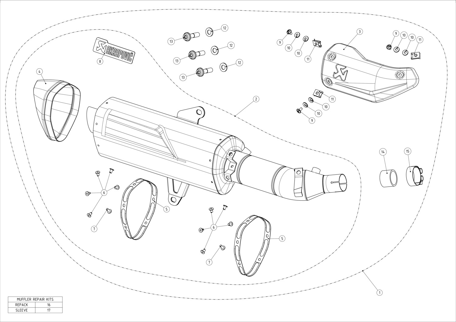 Built from sandblasted high-grade stainless steel, the specially profiled muffler outer sleeve and link pipe offer durability and corrosion resistance, and the carbon-fibre end cap adds a lightweight finish. The design features a newly created heatshield, embossed with the Akrapovič logo to enhance the visual impact, with a monochrome Akrapovič sticker on the muffler completing the look. The use of lightweight material results in a weight saving of 22% (1.3 kg) over the standard stock version.