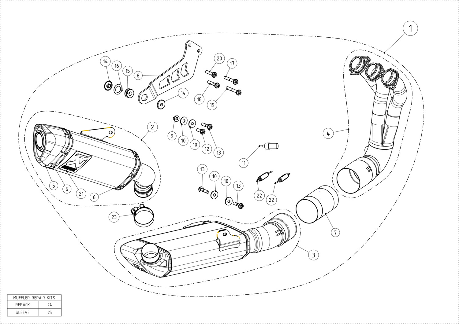 This system is constructed using race-proven materials. The high-grade titanium muffler outer sleeve is coupled with stainless-steel link pipes and headers and is finished with a hand-crafted carbon-fibre end cap.
