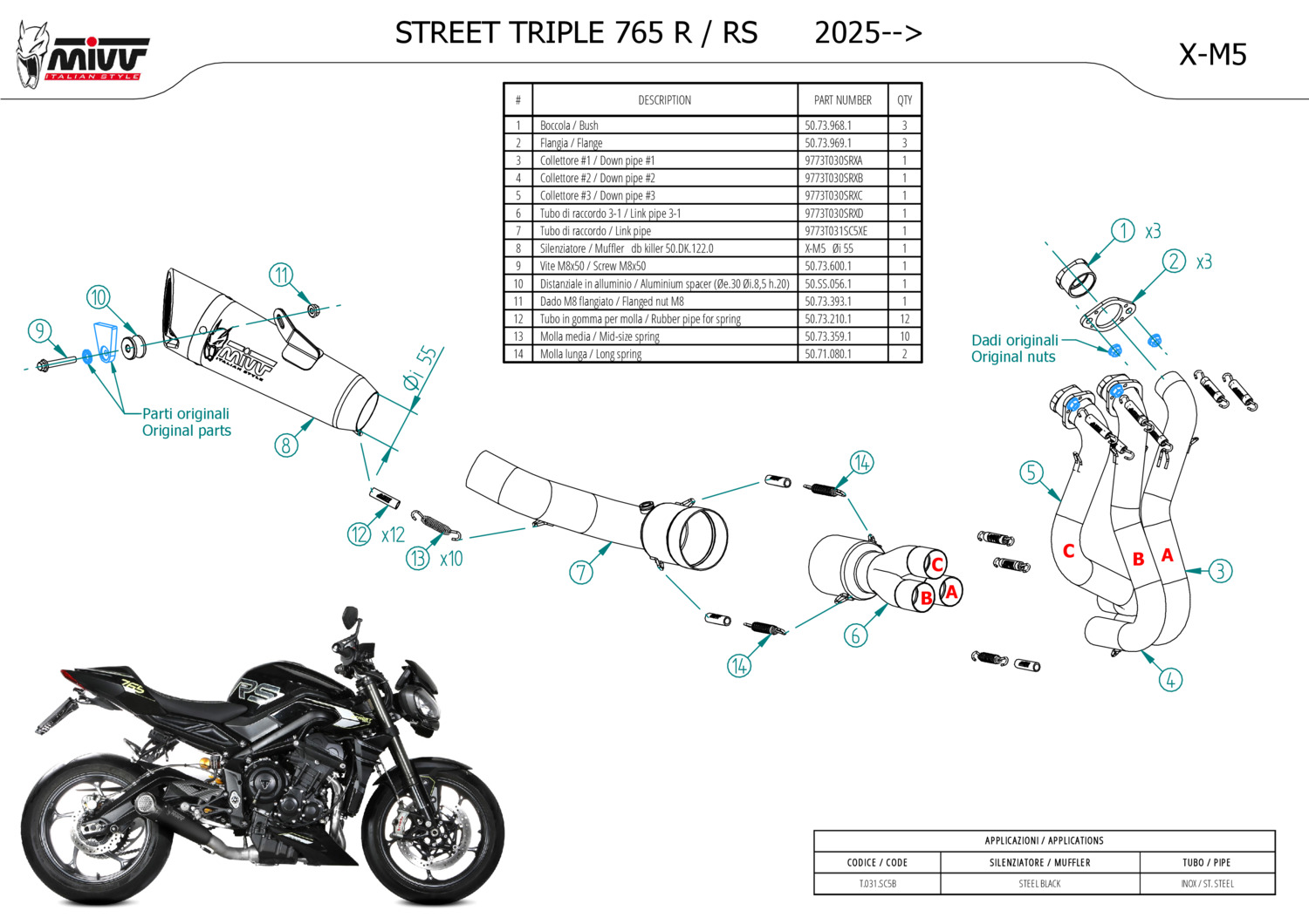 T.031.SC5B - Full exhaust Mivv X-M5 Black TRIUMPH STREET TRIPLE 765 (25)