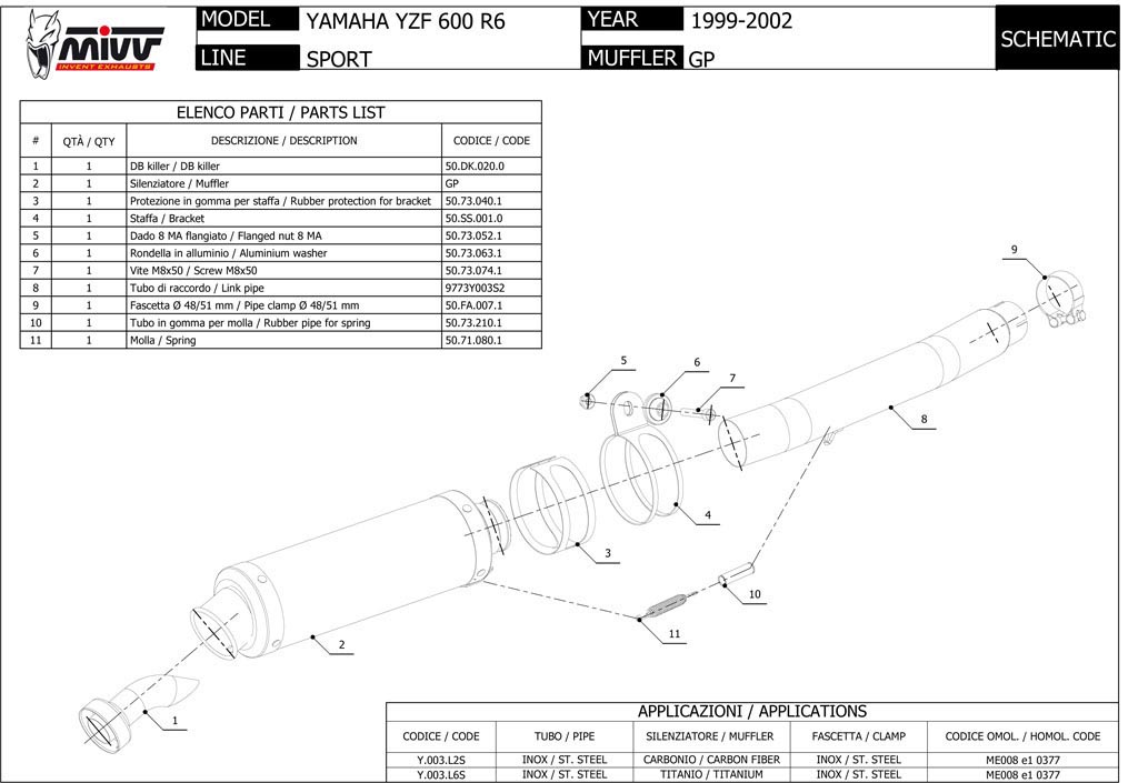 Muffler Exhaust Mivv GP SPORT BLACK STEEL STANDARD Approved for YAMAHA YZF 600 R6 99-02