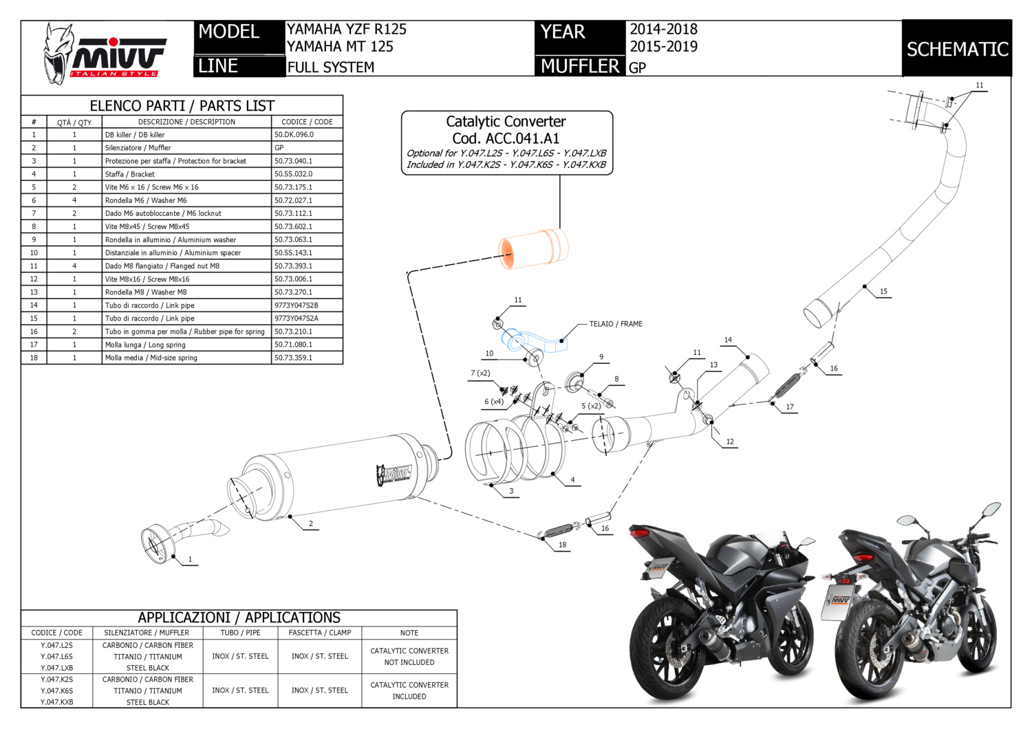 Y.047.LXBC - Full exhaust system Mivv GP Black YAMAHA MT-125 (15-19)