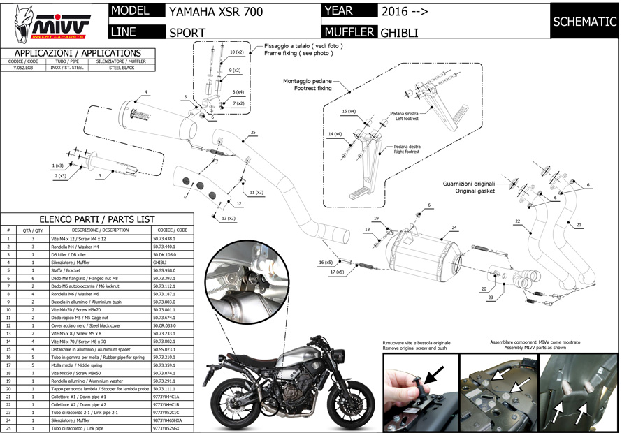 Y.052.LGB - Full Exhaust Mivv SPORT GHIBLI S. Steel YAMAHA XSR 700 (2016 >)
