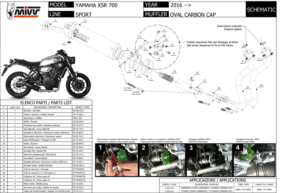 Y.053.L4C - Full Exhaust Mivv SPORT OVAL Titanium YAMAHA XSR 700 (2016 >)