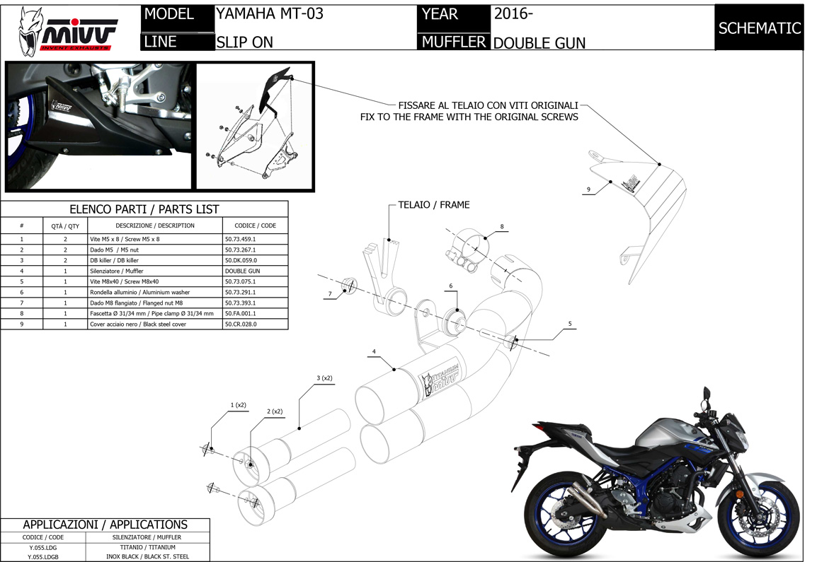 Y.055.LDGB - Exhaust Muffler Mivv DOUBLE GUN BLACK YAMAHA MT-03 (16>)
