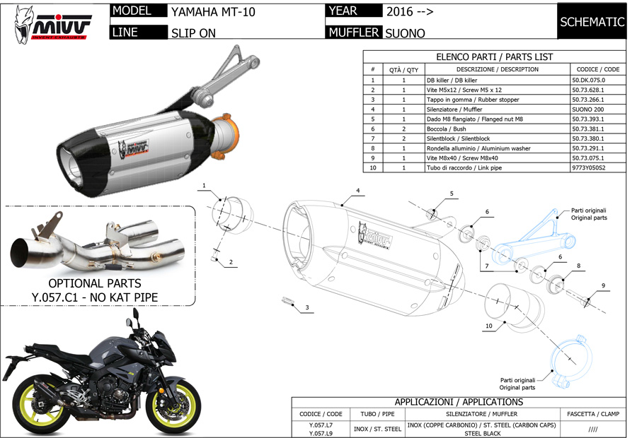 Y.057.L7 - Exhaust Muffler Mivv SPORT SUONO S. Steel YAMAHA MT-10 (2016 >)