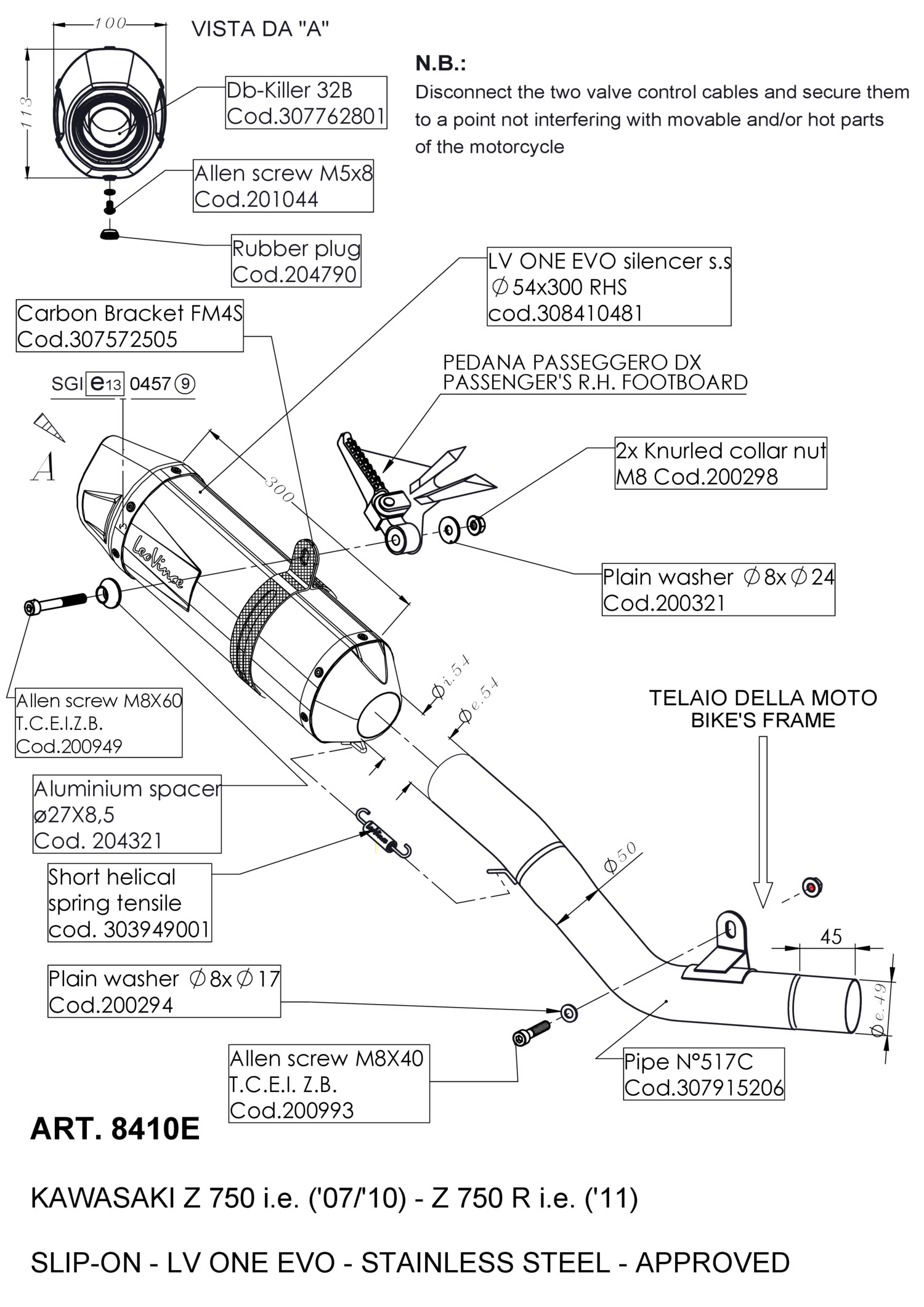 8410E - Silenciador Escape LeoVince LV ONE EVO KAWASAKI Z 750 (07-14)