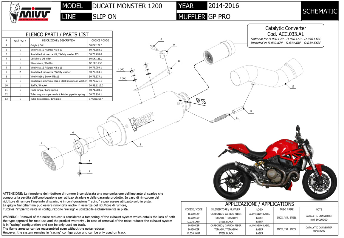 NOTICE: OMOLOGATO SOLO CON CATALIZZATORE INSTALLATO / TYPE APPROVED ONLY WHEN CATALYST IS INSTALLED