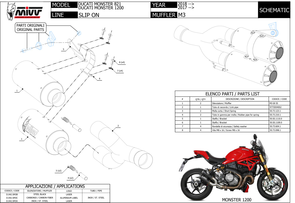 D.042.SM3X - Silenciadores Escape Mivv MK3 Inox DUCATI MONSTER 821 / 1200Special Price 489,66 US$ Regular Price 635,92 US$ -23% -