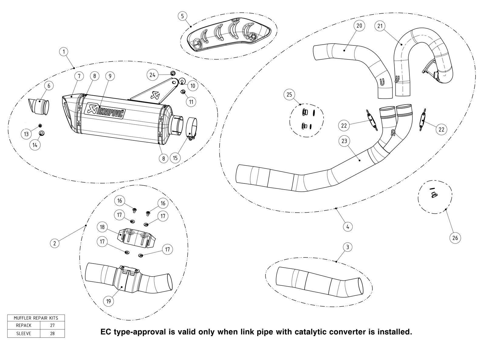 Homologación CE es válida solamente cuando se instala la tubería de enlace con convertidor catalítico.