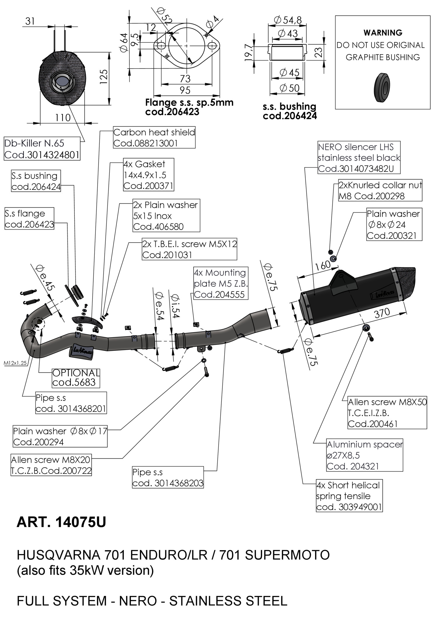 14075U - Échappement Complet LeoVince NERO Inox HUSQVARNA 701 SUPERMOTO (17-20)