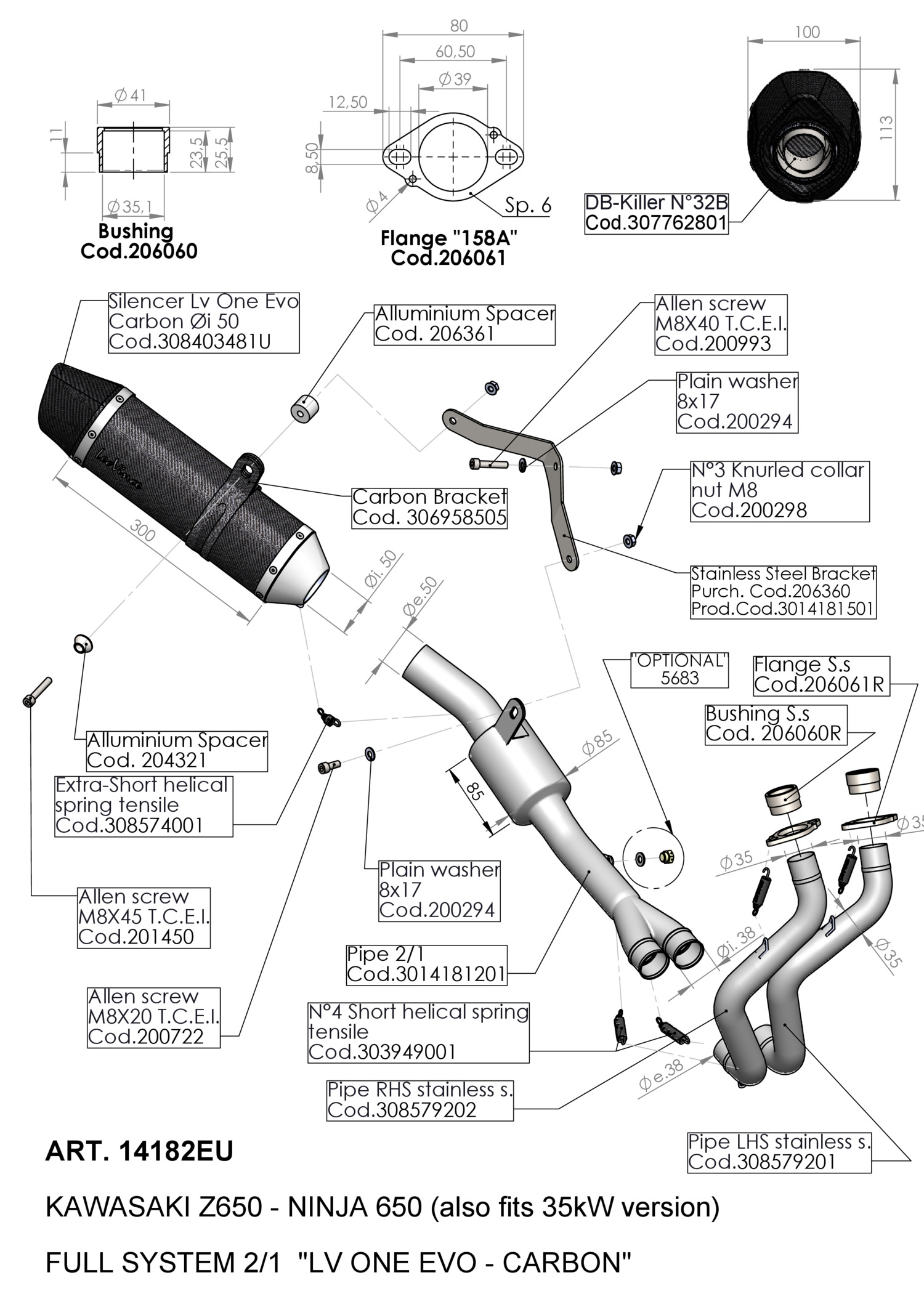 Système d'échappement complet LeoVince LV ONE EVO CARBON FIBER Carbone KAWASAKI NINJA 650 (17-19) | KAWASAKI NINJA 650 2020 | KAWASAKI Z 650 (17-19) | KAWASAKI Z 650 2020