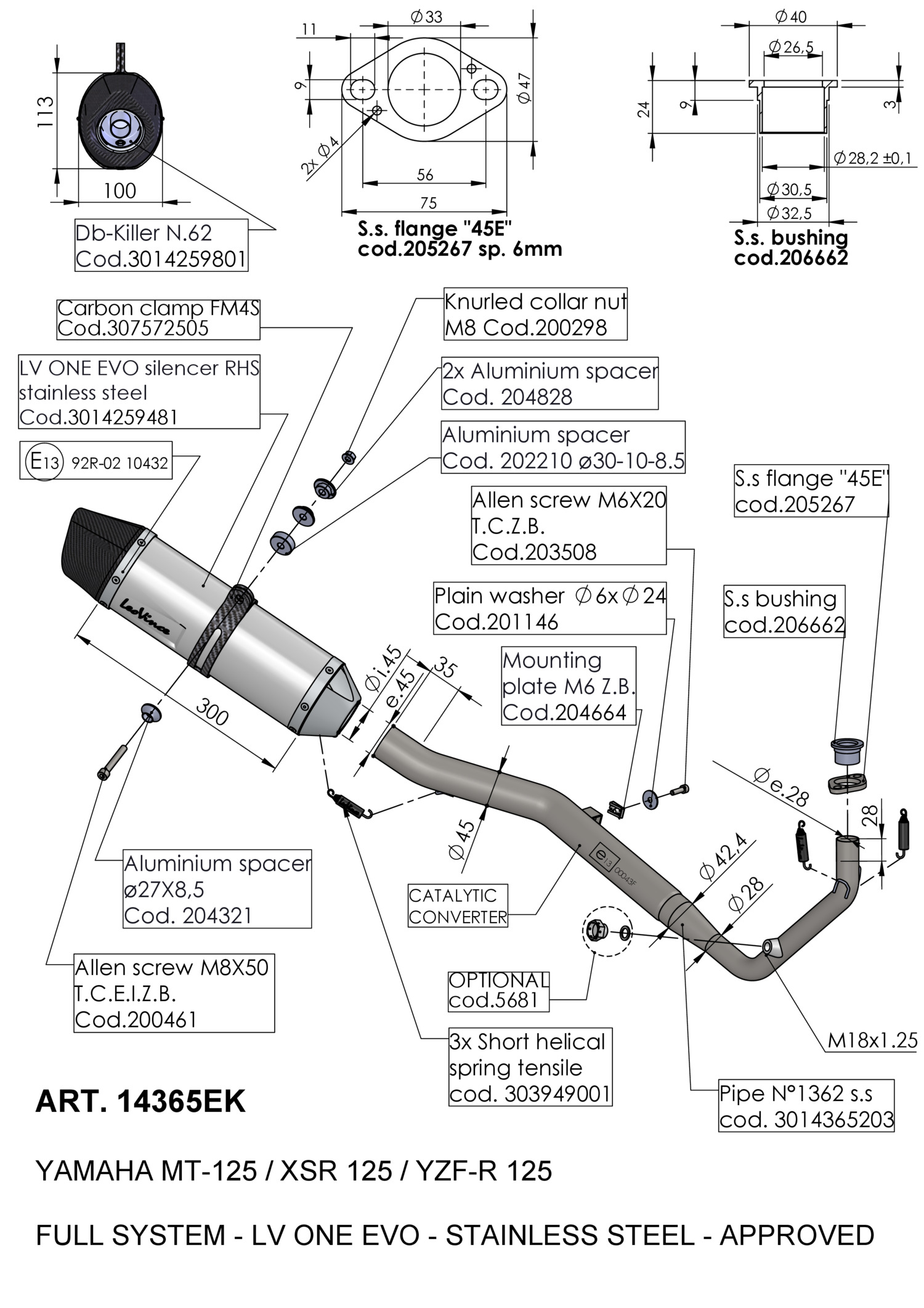 Système d'échappement complet LeoVince LV ONE EVO Acier inoxydable YAMAHA MT-125 (21-23) | YAMAHA XSR 125 (21-23) | YAMAHA YZF-R 125 (21-23)