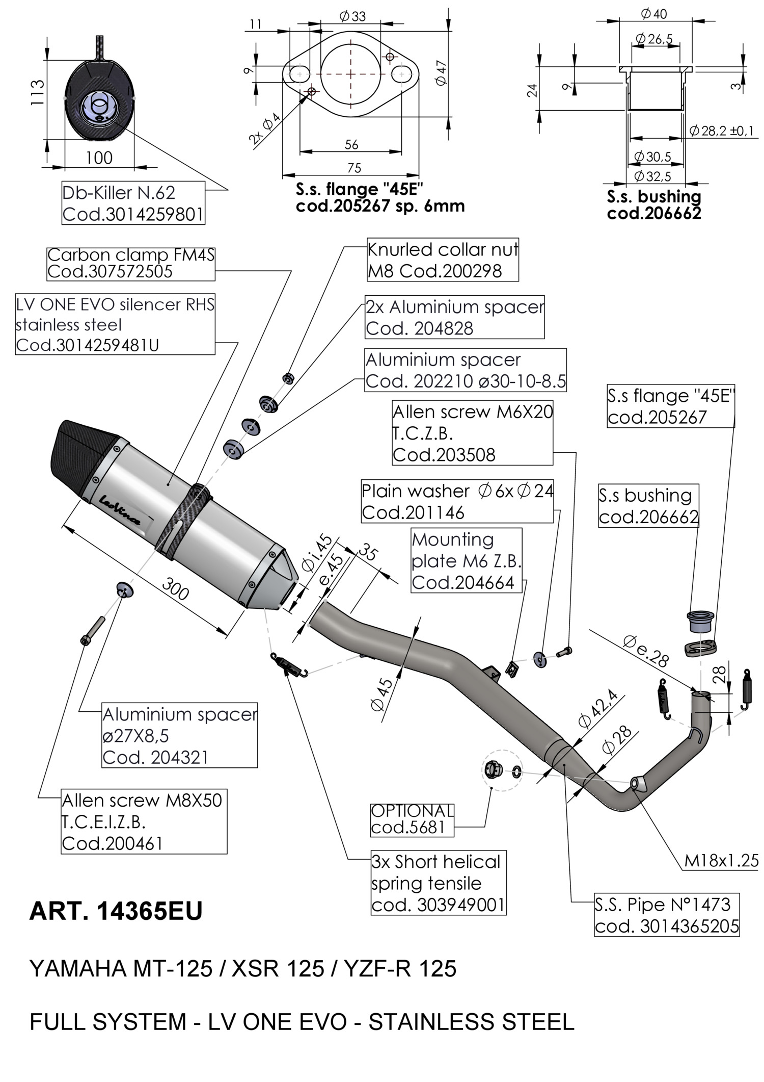 14365EU - Échappement Complet LeoVince LV ONE EVO Inox YAMAHA MT-125 (21-23)