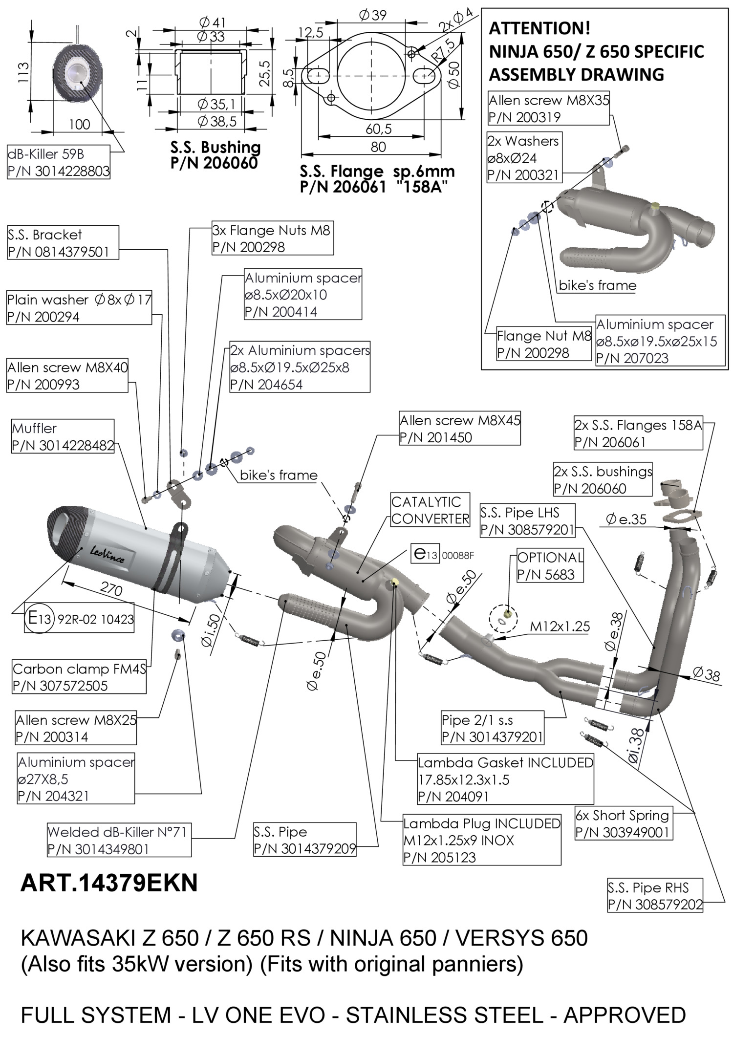 Système d'échappement complet LeoVince LV ONE EVO Acier inoxydable KAWASAKI Z 650 RS (22-24) | KAWASAKI VERSYS 650 (21-24) | KAWASAKI NINJA 650 (21-25) | KAWASAKI Z 650 (21-25)