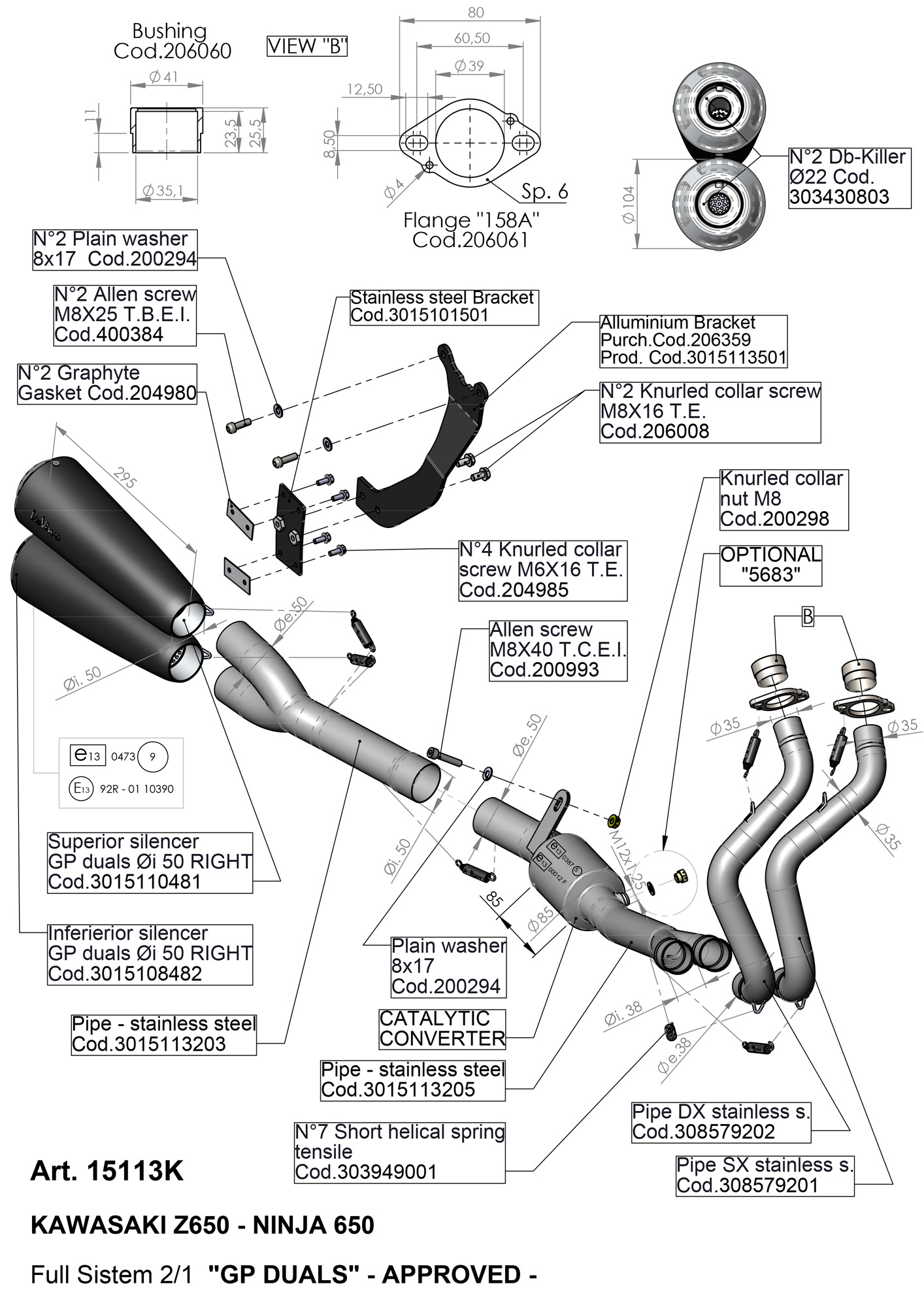15113K - Echappement Complete LeoVince GP DUALS Inox KAWASAKI NINJA 650 / Z 650