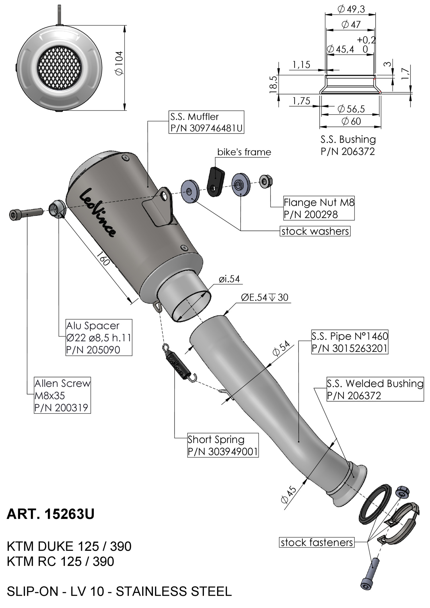 15263U - Silencieux d'échappement LeoVince LV-10 Inox KTM DUKE 125 (17-20)