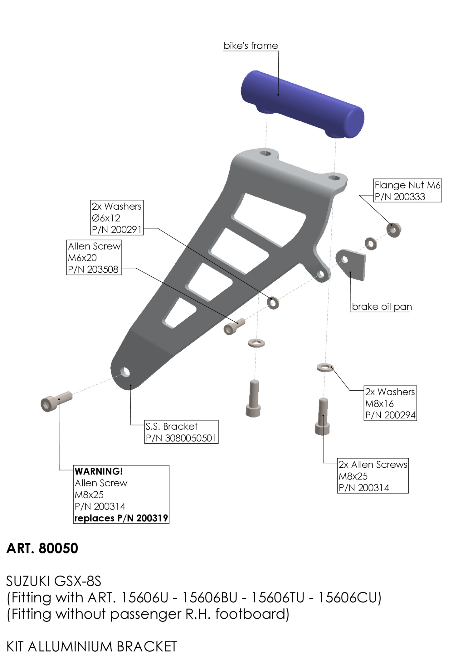 Vous commentez :80050 - Support de retrait du marchepied passager LeoVince SUZUKI GSX-8S (23-24)