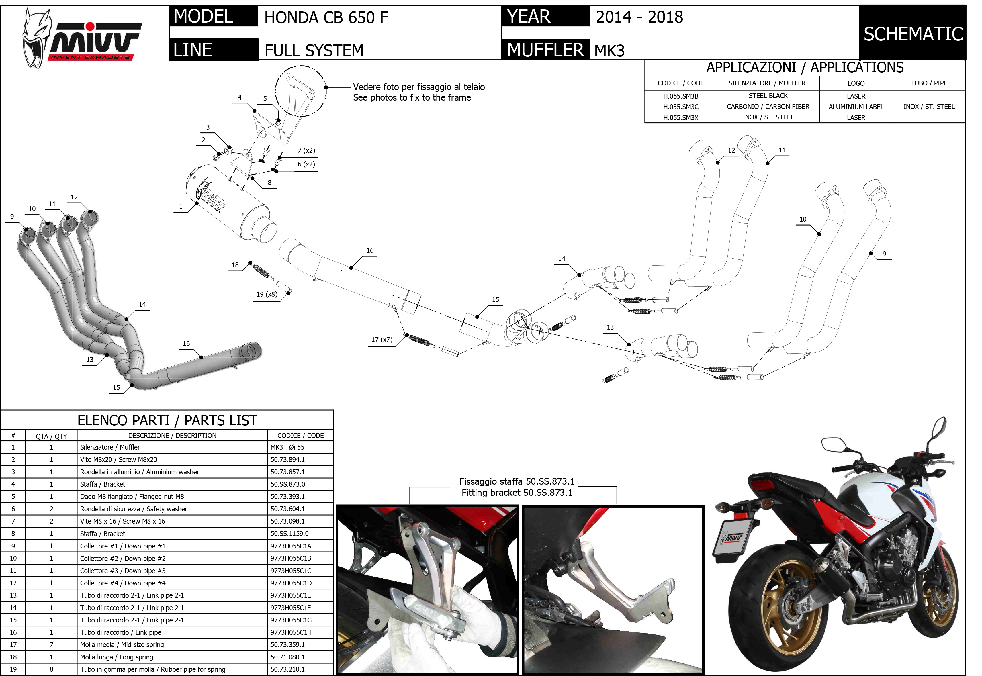 H.055.SM3X - Echappement Complete MIVV MK3 Inox HONDA CB 650 F (14-18)