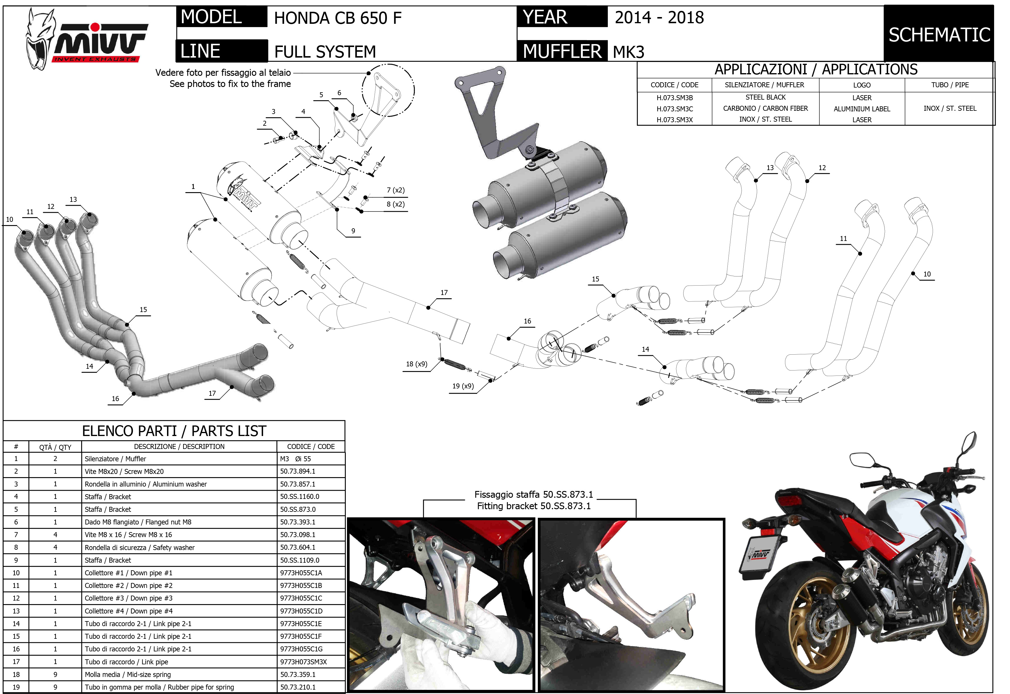 H.073.SM3B - Echappement Complete MIVV MK3 Black HONDA CB 650 F (14-18)