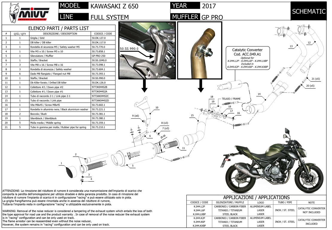 OMOLOGATO SOLO CON CATALIZZATORE INSTALLATO / TYPE APPROVED ONLY WHEN CATALYST IS INSTALLED