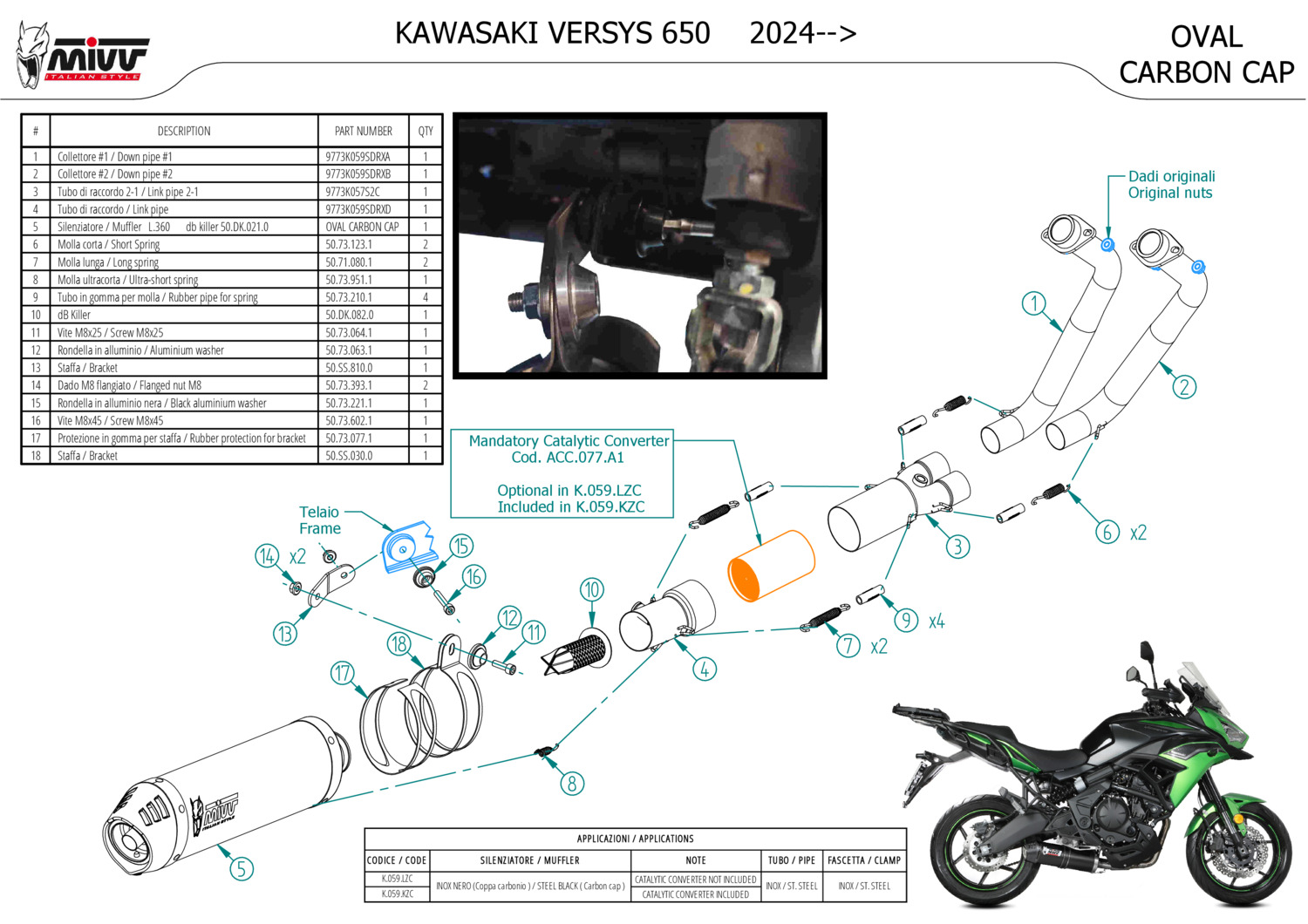 K.059.LZC - Système d'échappement complet Mivv OVAL Noir KAWASAKI Versys 650Prix Spécial 535,92 € Prix normal 696,00 € -23% -