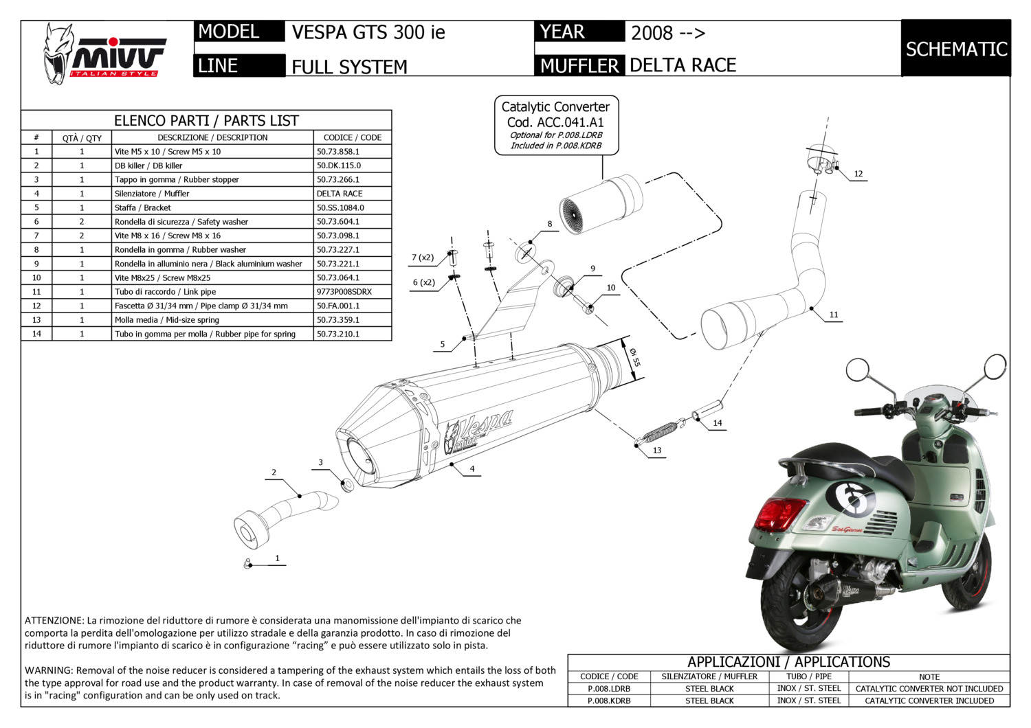 NOTICE: OMOLOGATO SOLO CON CATALIZZATORE INSTALLATO / TYPE APPROVED ONLY WHEN CATALYST IS INSTALLED