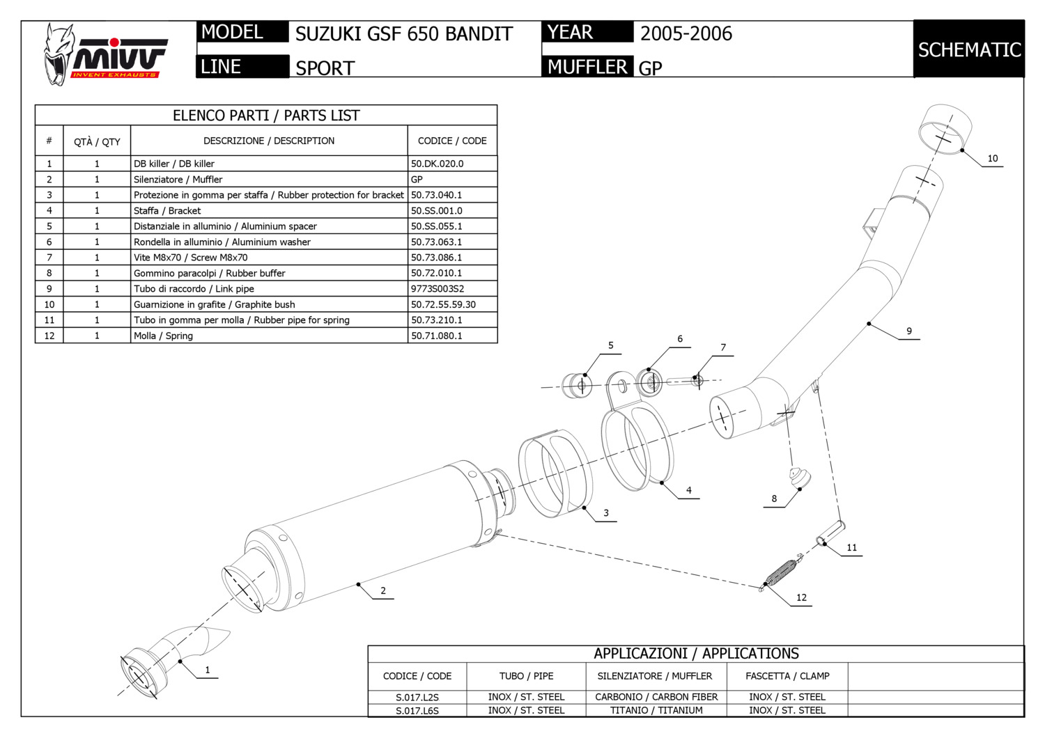 S.017.L7 - Silencieux Echappement Mivv Suono Steel Suzuki GSF 650 Bandit 05/06Prix Spécial 441,31 $US Prix normal 573,13 $US -23%