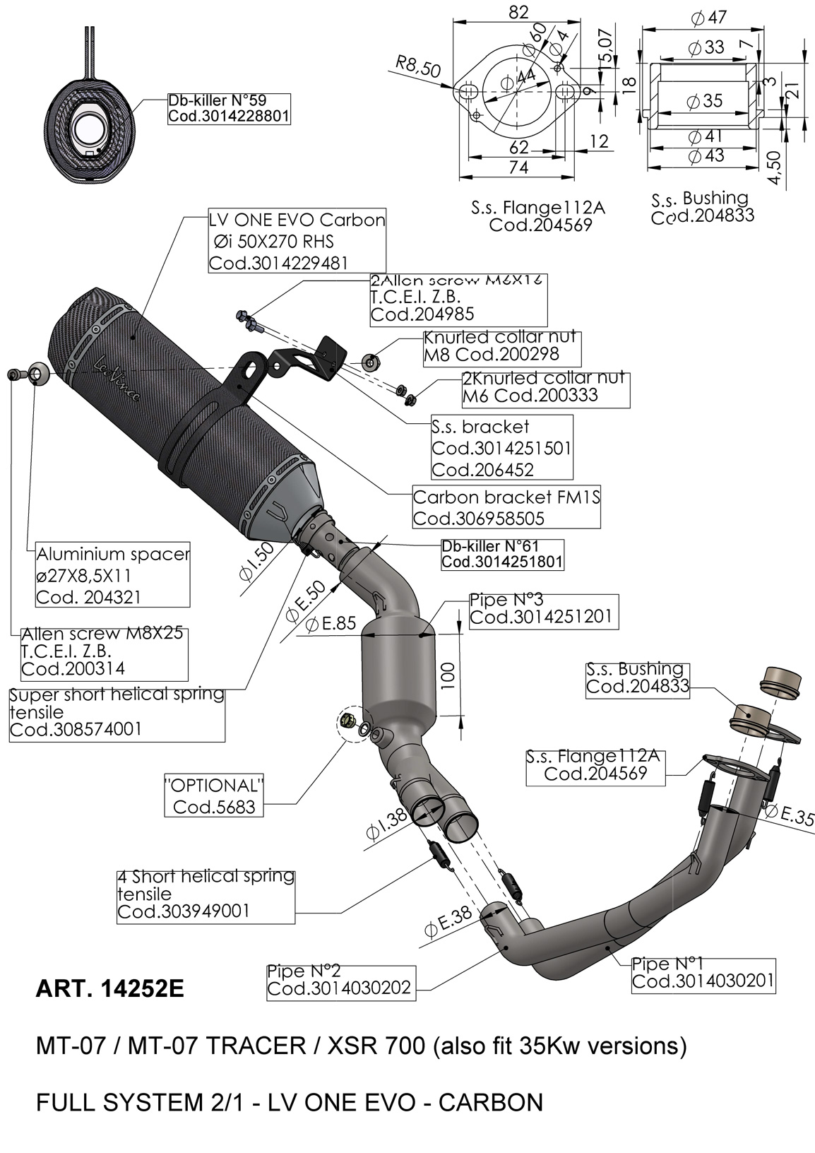 14252E - Scarico Completo LeoVince LV ONE EVO YAMAHA MT-07 / FZ-07 / XSR 700