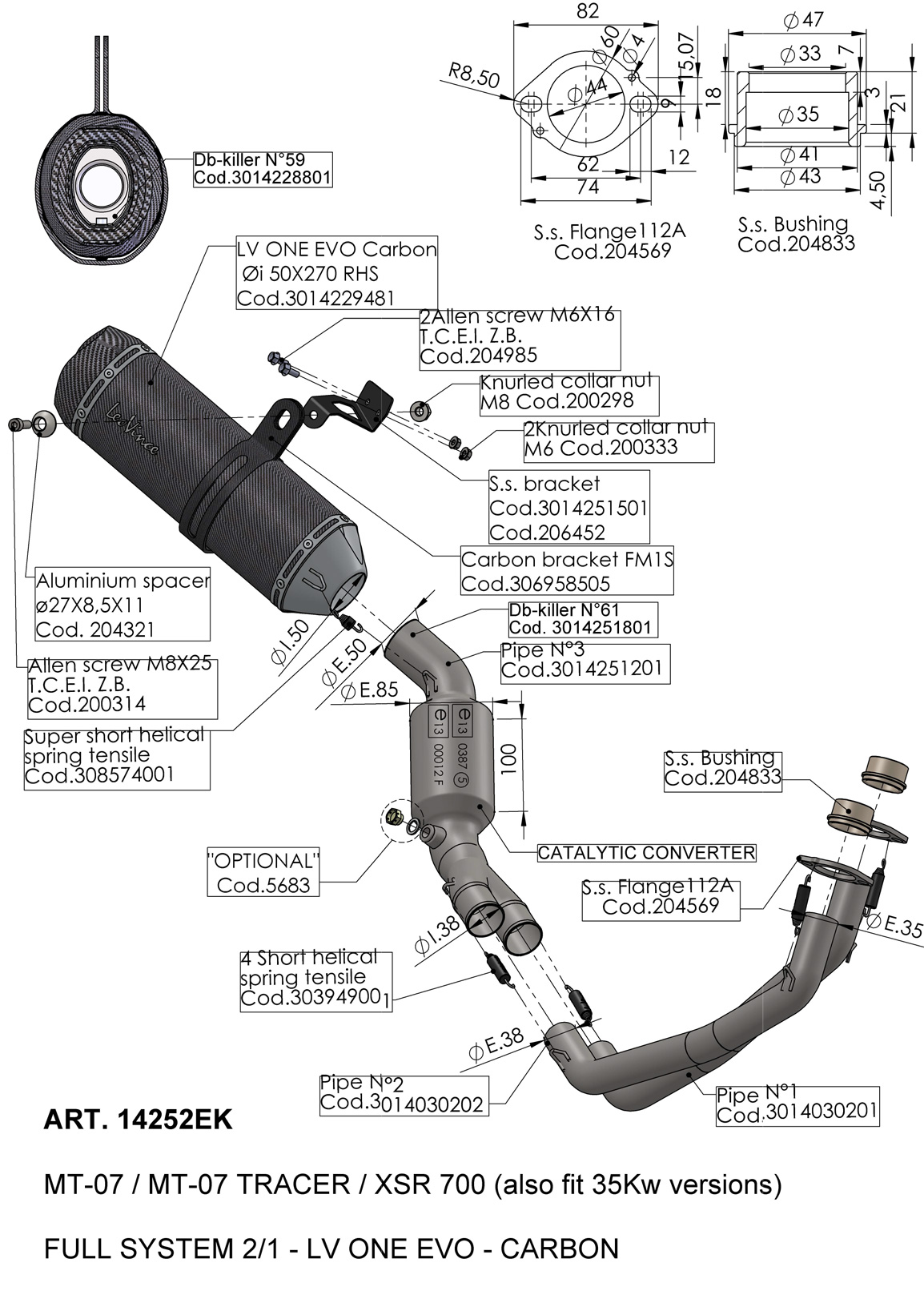 14252EK - Scarico Completo LeoVince LV ONE EVO YAMAHA MT-07 / FZ-07 / XSR 700