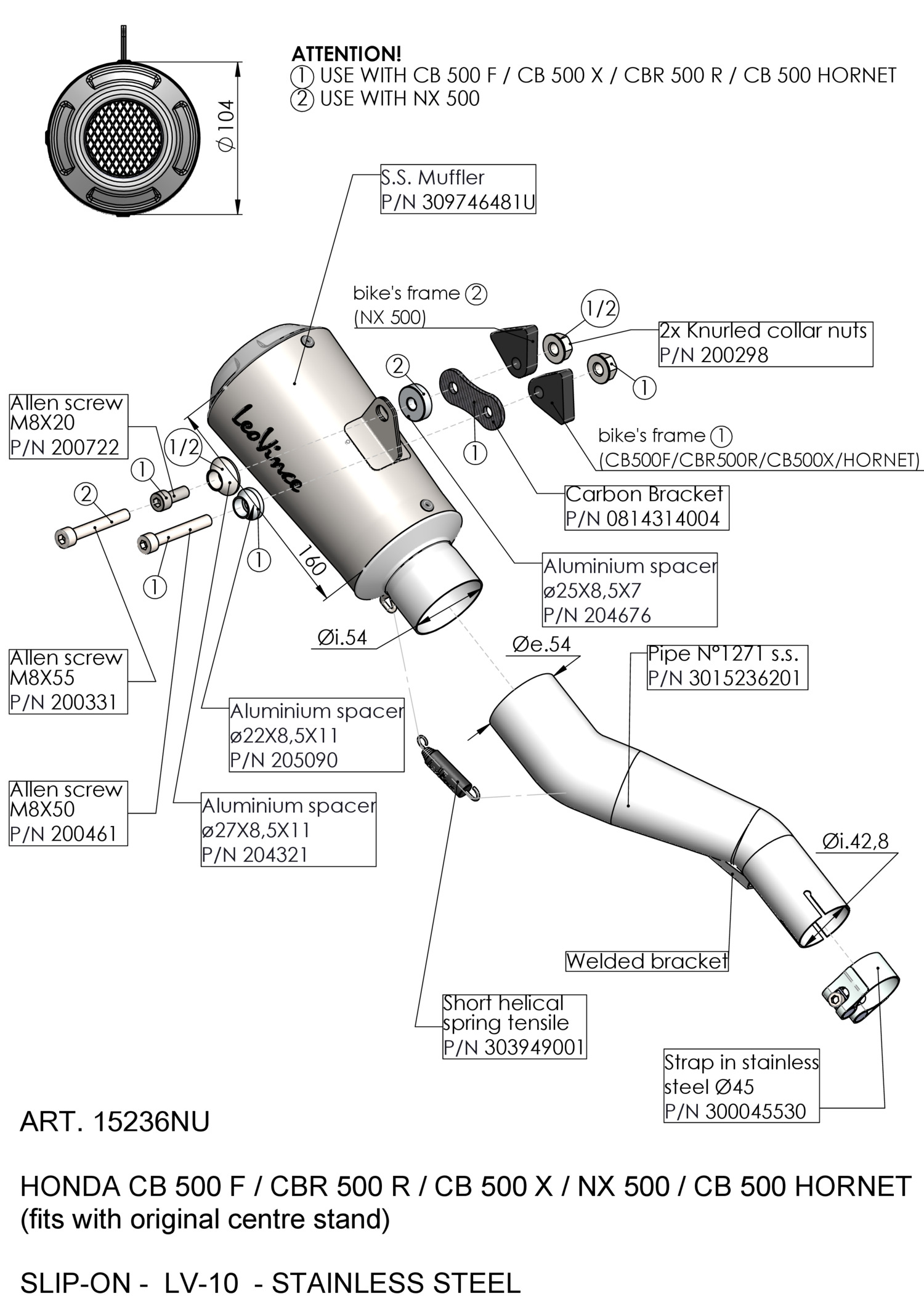 15236NU - Terminale Scarico LeoVince LV-10 Inox HONDA NX 500 (24-25)