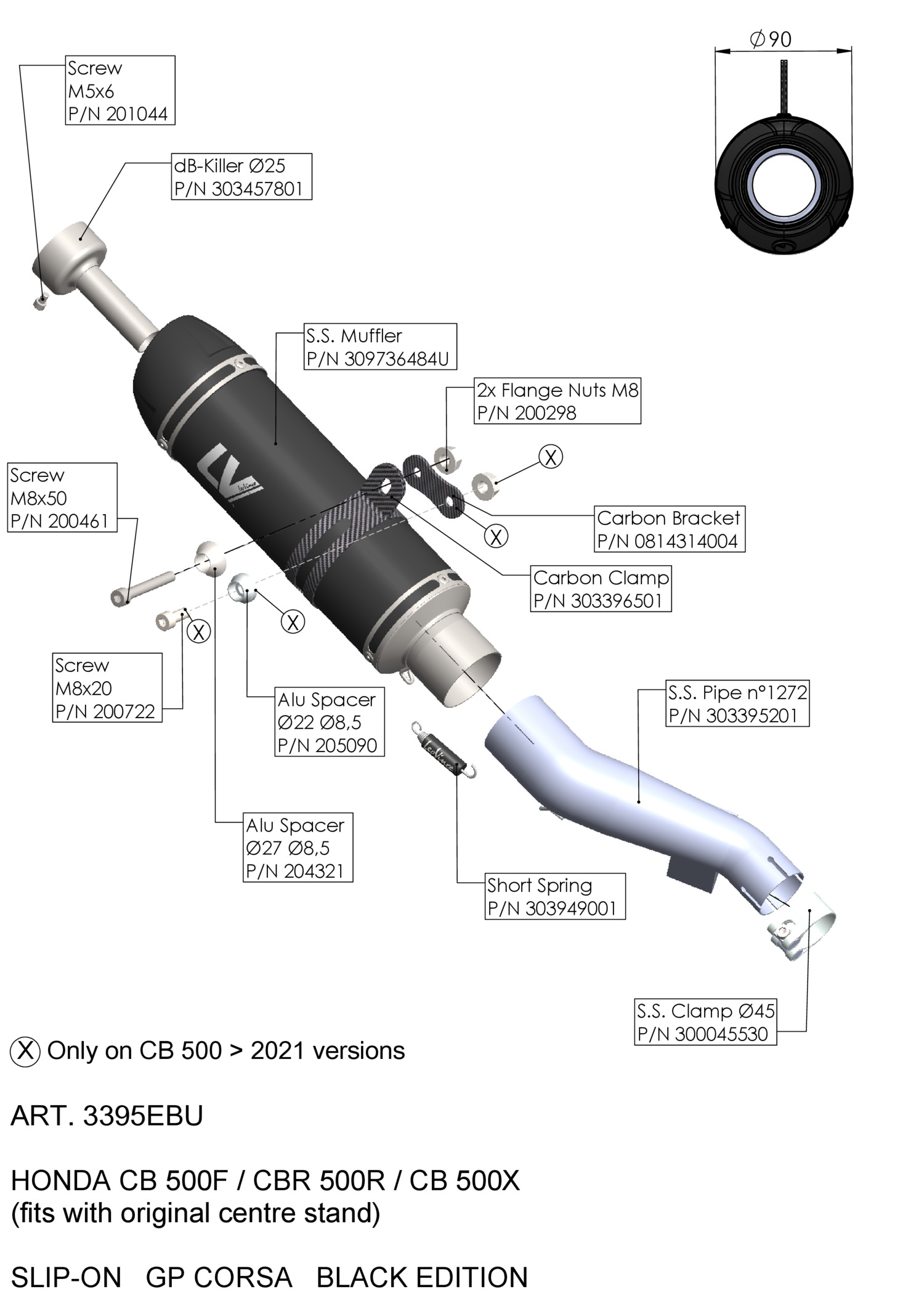 3395EBU - Terminale Scarico LeoVince GP CORSA EVO BLACK HONDA CB 500 X (19-23)