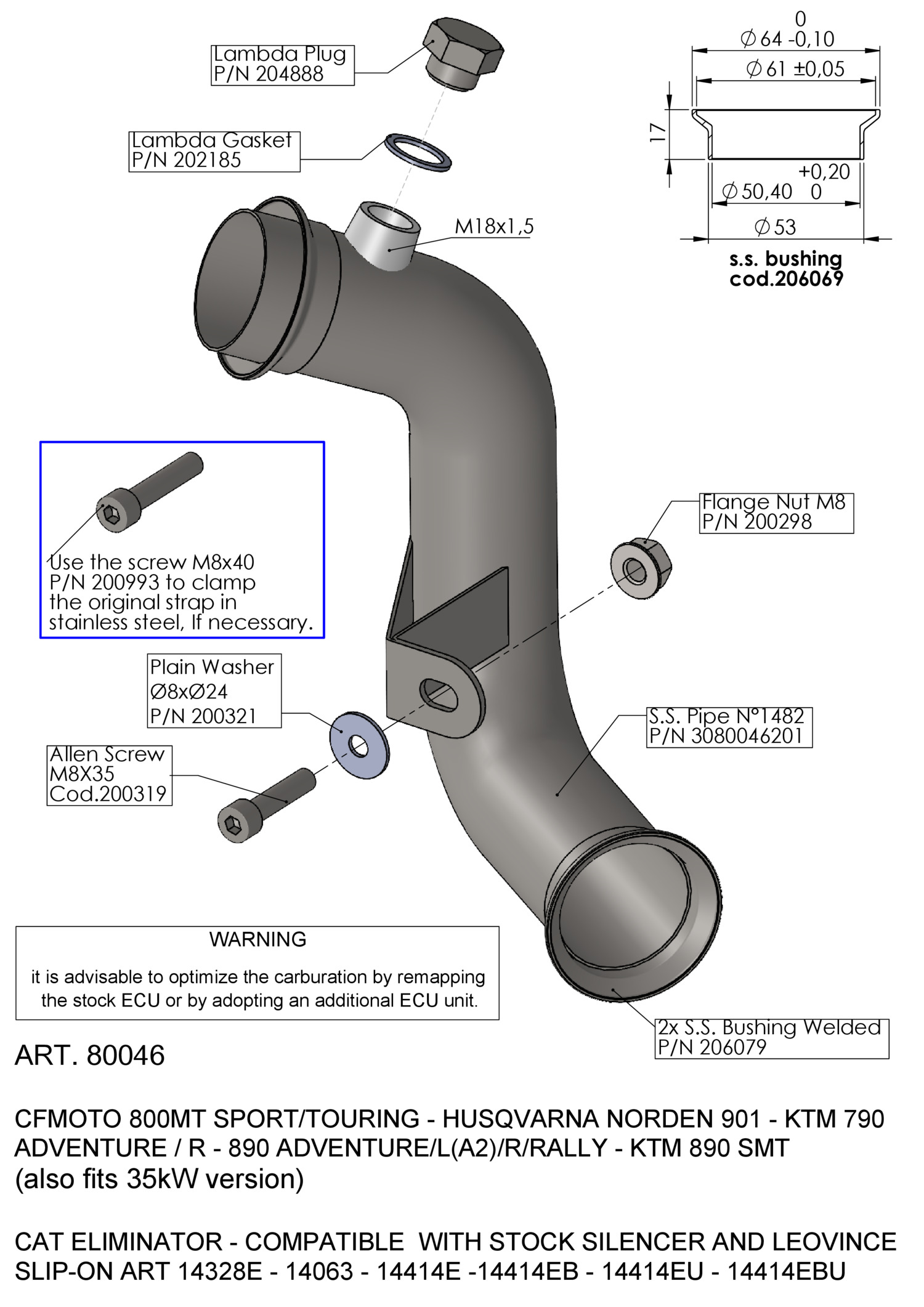 Raccordo Scarico LeoVince No-Kat KTM 790 ADVENTURE/R (19-20) | HUSQVARNA NORDEN 901 (22-25) | KTM 890 ADVENTURE/L A2/R/RALLY (21-25) | KTM 890 SMT (23-25) | HUSQVARNA SVARTPILEN 801 (24-25) | KTM 790 ADVENTURE/R (23-25) | CF MOTO 800 MT-X 2025 | CF MOTO 800 MT / IBEX 800 E / SPORT/TOURING/EXPLORE/LIMITED EDITION (22-25) | CF MOTO 800 MT / IBEX 800 E / SPORT/TOURING/EXPLORE/LIMITED EDITION 2025