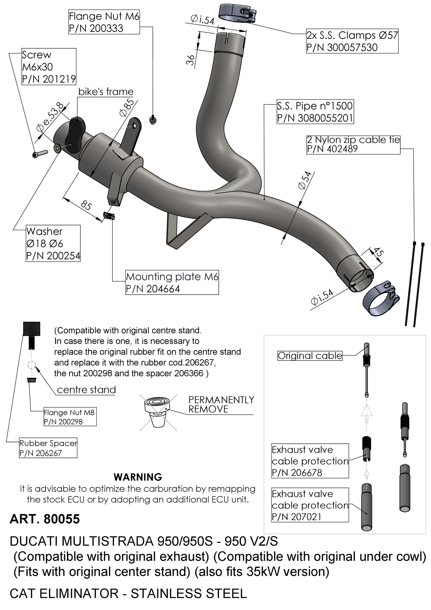 80055 - Raccordo Scarico LeoVince No-Kat DUCATI MULTISTRADA 950 V2/S (22-24)